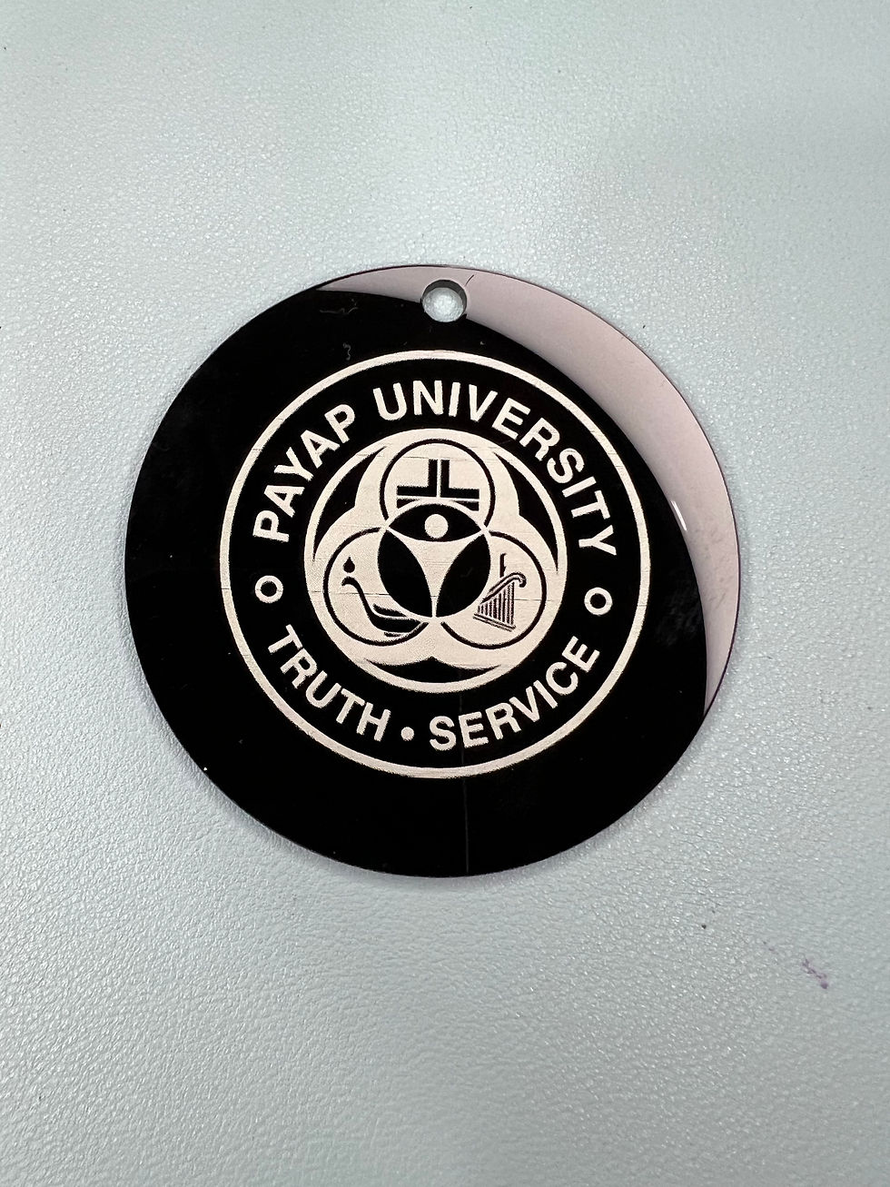 Individually personalised student bag tags for schools and universities with strong stainless steel split ring and tie wire. 75mm x 2mm black acrylic engraved both sides…